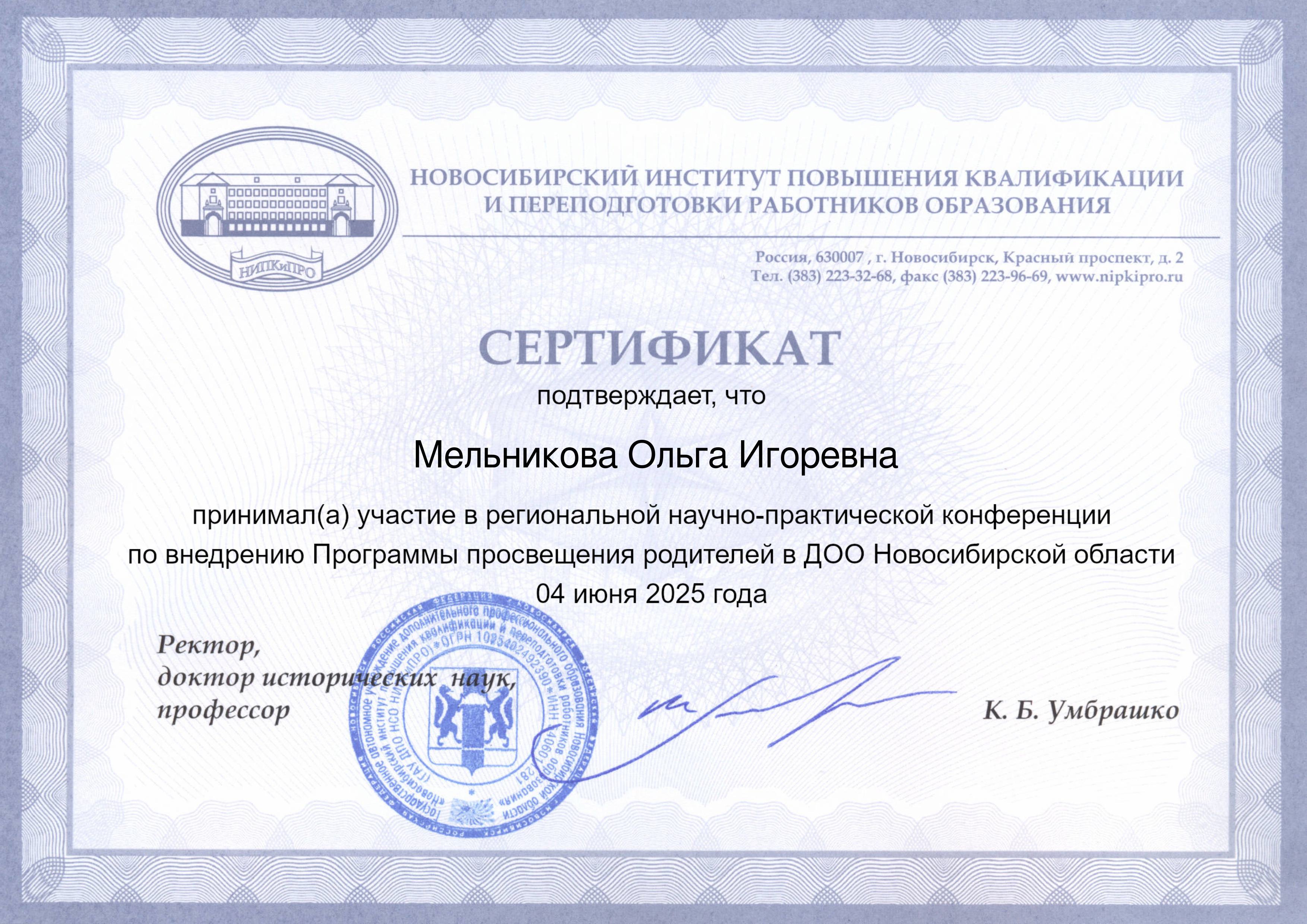 Сертификат Просвещение родителей